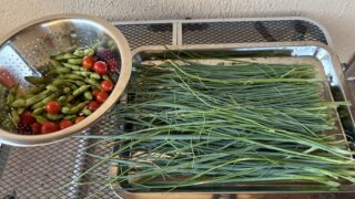 こんにちは、なつすけです٩( 'ω' )و今日は庭で作っている野菜たちを収穫しました!収穫した野菜たちは、ミニトマト、ネギ、枝豆です☆ネギと枝豆は初挑戦でしたが、ちゃんと育ってくれて感動(≧∇≦)娘と一緒に収穫したのですが、ミニトマトを「赤...